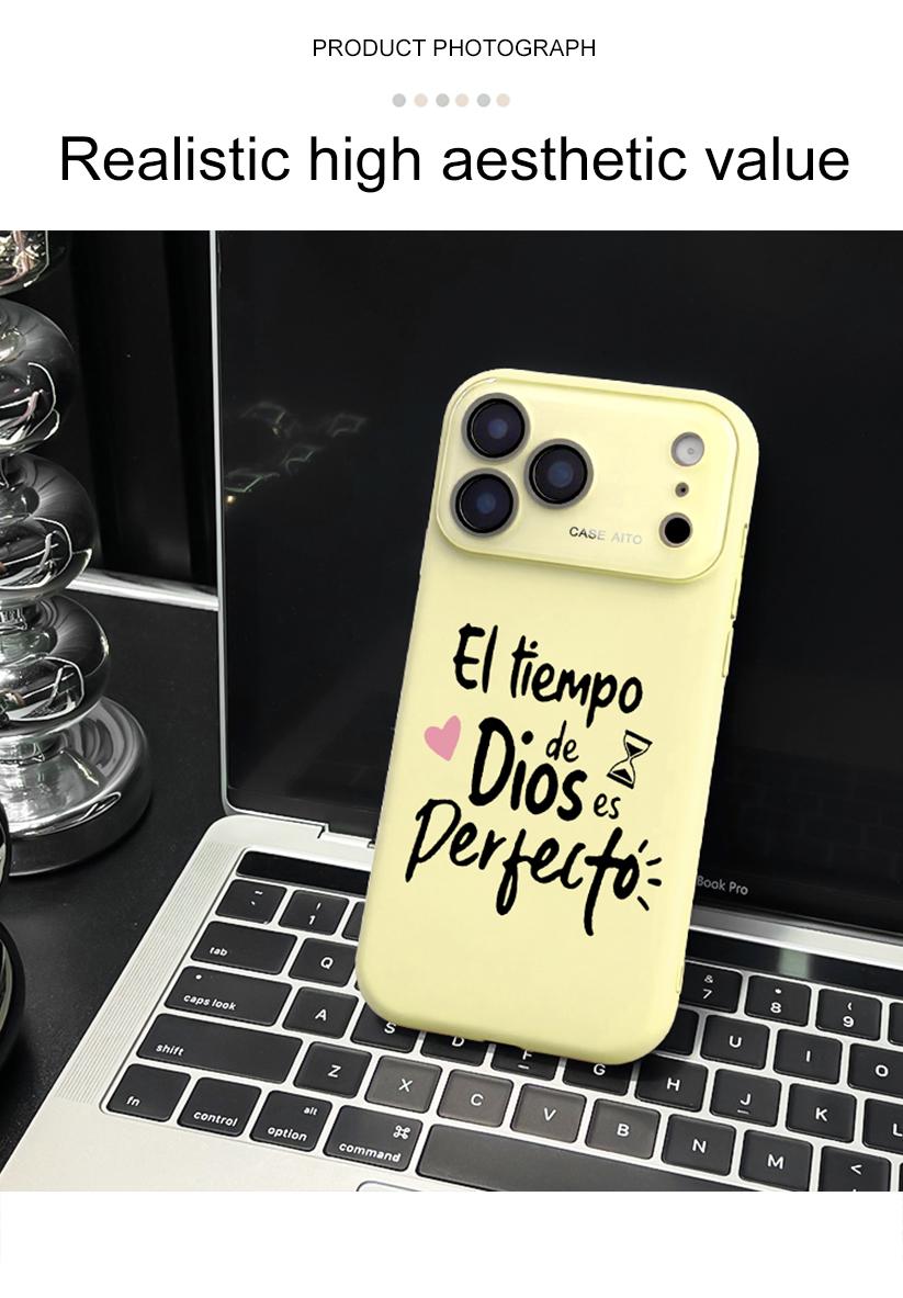 Carry a daily reminder of faith with our God's Timing Is Perfect Phone Case! Featuring the beloved Spanish quote "El tiempo de Dios es Perfecto" in a playful, handwritten style, this case blends spiritual inspiration with unbeatable protection for your iPhone 17 Pro Max, 16, 15 Plus, 14, 13, 12.